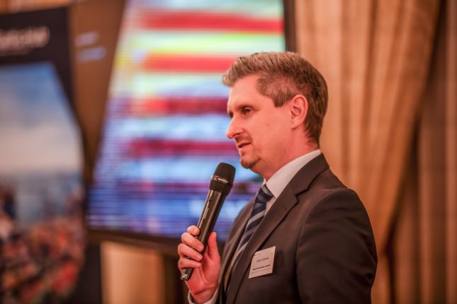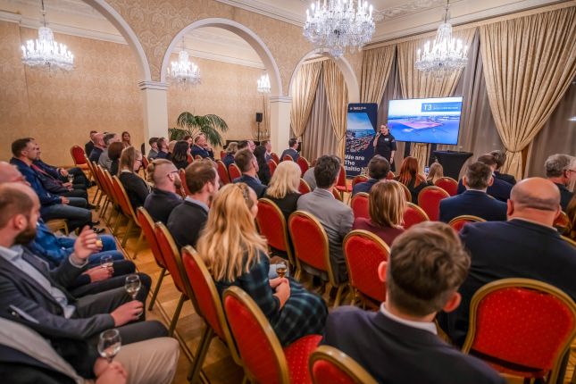 Marcin Kamola, Kierownik Handlowy, opowiedział o naszym terminalu, rozwoju infrastruktury kolejowej, możliwościach i korzyściach ze współpracy z terminalem kontenerowym w Polsce. Podczas gdy Charles Baker, przedstawił plany rozwojowe Baltic Hub i opowiedział o kamieniach milowych podczas budowy nowego nabrzeża kontenerowego T3 oraz zaprosił do bliższej współpracy z naszym terminalem.