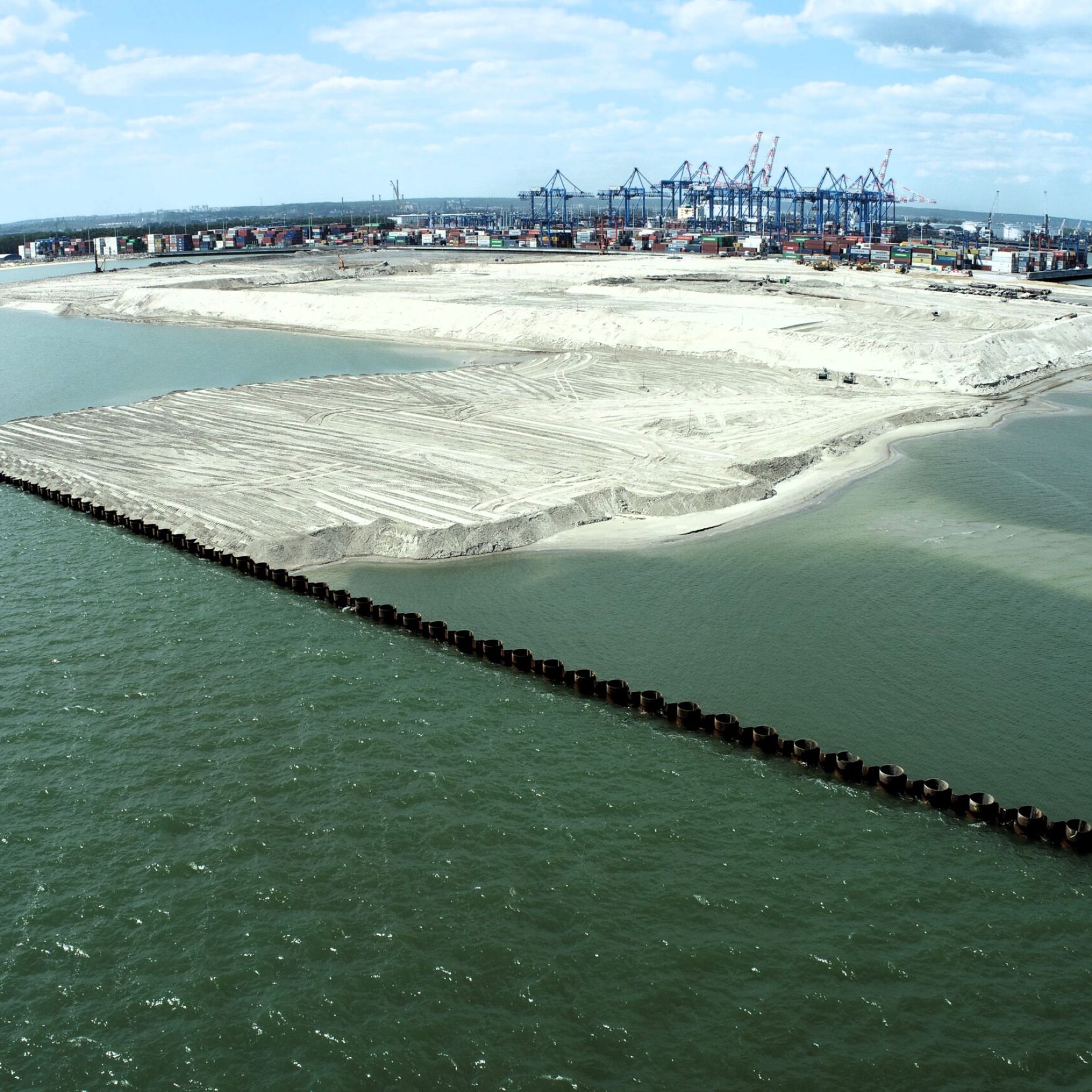 The T3 terminal is under construction. We have completed the piling on the main quay wall, the backfilling of the wall on the land side and the consolidation of the soil is underway. Once the consolidation is complete, the next step will be vibroflotation soil compaction.