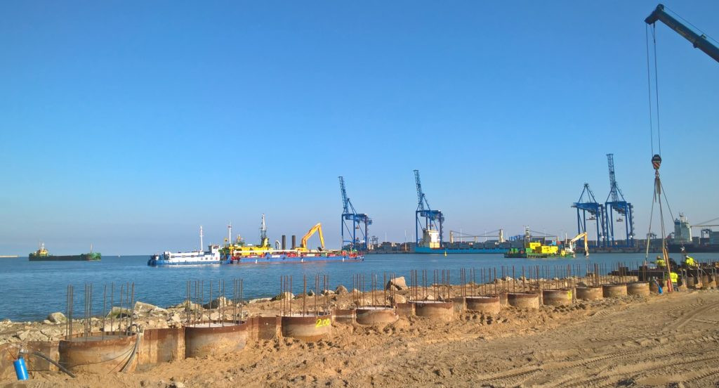 Budowa T2 to nie tylko prace lądowe, ale także prace podwodne. W ramach kompleksowych przygotowań do przyjęcia nowych armatorów, w zatoce wykonywane są aktualnie prace czerpalne. Głębokość pogłębienia to ok. 16,5m.