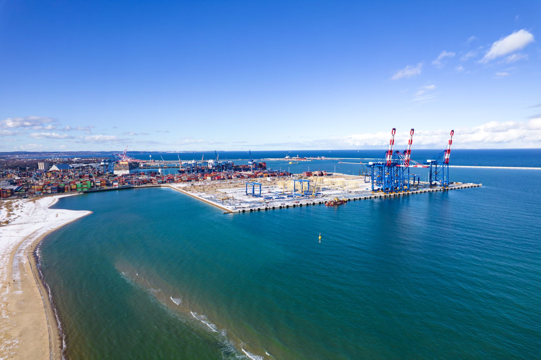 Zakończono instalację całego niezbędnego wyposażenia głównego nabrzeża, w tym ukończenie torów STS na całej długości nabrzeża. Zadanie to wymagało skoordynowania różnych elementów, aby zapewnić ich odpowiednie wyrównanie i bezpieczne zamocowanie w celu optymalnej funkcjonalności.
